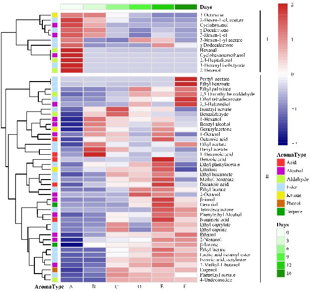 在本研究中,我们研究了蟠桃酒自然发酵过程中理化性质、挥发性代谢物含量和微生物群落演替的动态变化。自然发酵增强了蟠桃酒的芳香特性。高通量测序结果显示随着蟠桃酒发酵时间的增加,真菌群落多样性显著下降,细菌群落多样性显著增加。对不同发酵阶段挥发性成分与核心功能微生物群之间相互作用的评估表明,微生物在蟠桃酒自然发酵过程中占据重要地位,并负责产生蟠桃酒特有的芳香和挥发性化合物。本研究结果有助于加深对蟠桃酒自然发酵机制的理解,并为蟠桃酒风味改进提供理论依据。