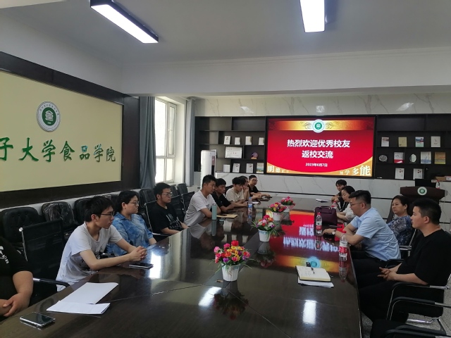 6月7日,食品学院2013届毕业生包才、李康返校与学院领导、留校同学、2023届毕业生深入交流并开展招聘宣讲。