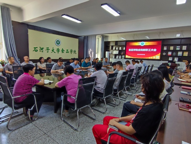 8月25日下午,食品学院在220会议室召开全体教职工大会,党委书记程卫东主持,全院教职工参加会议。