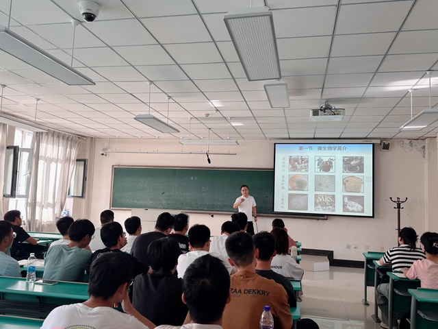 828日授课第一天,学院组织督导,院领导及各系办负责人等深入课堂实时关注开课情况,教师学生均能按时到位,精神状态饱满的迎接新学期第一天课程。学院对开课第一周教学检查工作也进行了安排部署,副院长魏长庆,教学办公室主任秦婕,团委书记刘桂青等一起来到博学楼,对《食品微生物学》课程进行随堂督导听课,并认真查看和了解了教师教学准备、学生出勤和教室设施等情况