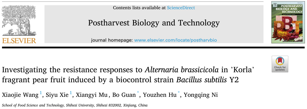 【学术前沿】生防菌株枯草芽孢杆菌Y2诱导库尔勒香梨果实对链格孢菌抗性响应的研究