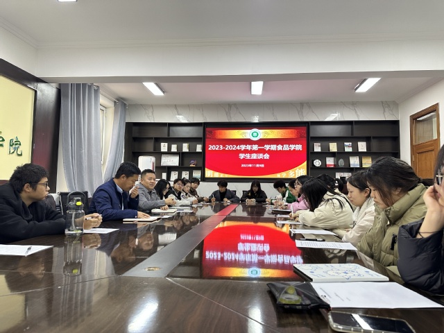 2023年11月9日,食品学院期中教学检查学生座谈会在食品学院二楼220会议室顺利召开,学院副书记雷建鹏、副院长魏长庆、教科办主任秦婕、学办负责人张苗苗、食品学院本科各班级学习委员及学生代表参会。魏长庆主持会议。