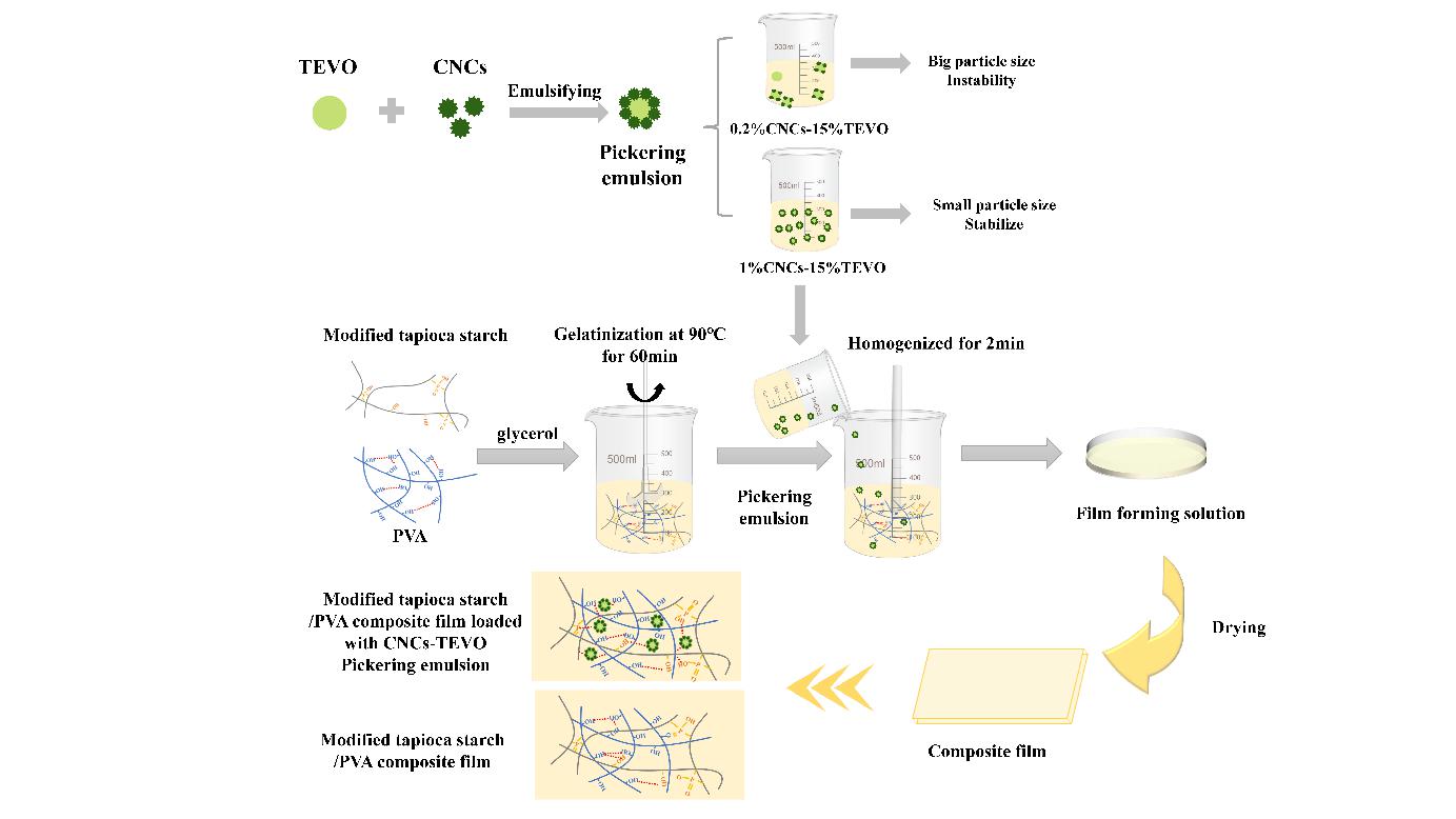 【学术前沿】基于改性木薯淀粉/聚乙烯醇:负载纤维素纳米晶稳定百里香精油皮克林乳液薄膜的制备及其特性