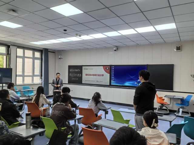 郭长江毕业于重庆工商大学市场营销专业,从事酒类营销推广20余年,公司年销售额各类酒品3亿元以上,是张裕股份、中粮长城等国内葡萄酒头部企业西南地区的主要运营商,2023年公司被WBO组织评为国内葡萄酒行业“新锐”企业。根据课程组安排,郭长江亲临线下课堂,给学生们带来了《葡萄酒&电商行业分享》报告专题,包括电商发展历程、电商模式及分类、葡萄酒电商发展、葡萄酒电商营销案例分享等四部分内容,授课内容知识体系完整、紧贴行业现状、案例分析到位。在课堂交流环节,刘栋、骆荥、刘秋铄等三位同学,分别就消费者如何利用电商选购葡萄酒、反向跨境电商如何营销国产葡萄酒、电商企业如何吸引和培养专业人才等内容,与郭长江进行了热烈的讨论和交流,课堂交流学生们踊跃发言、气氛活跃、意犹未尽。