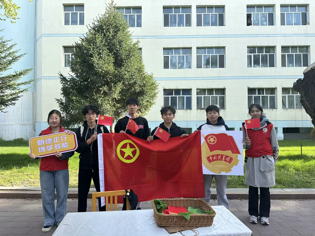 五四青年节来临之际,食品青协在全校范围内发起了“我与团旗共光辉”照片征集活动,鼓励同学们与团旗合影,以此表达对共青团精神的热爱和信仰。活动在石河子大学北区、中区等人流密集处设立宣传点,准备了国旗、团旗等道具,活动持续2天,共收集到130余份合影作品,涵盖了各学院和年级的学生。这些作品不仅展示了学生们的青春活力,也传递了“五四”精神的正能量。