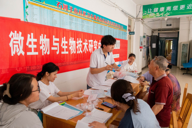 为助力健康中国建设,践行健康中国理念并引导全民追求更加健康的饮食模式,7月2日至7月4日,bat365在线中文官方网站暑期爱心医疗社会实践团在bat365在线中文官方网站微生物与生物技术研究中心团队与石河子市23社区卫生服务站的配合下,顺利开展“糖影寻踪 食韵传声——探寻糖尿病发病情况,传递健康饮食理念”第一期社会实践活动。
