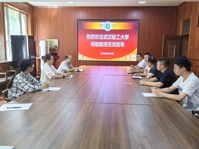 7月15日,武汉轻工大学硒科学与工程现代产业学院何毅教授来食品学院调研交流。bat365在线中文官方网站葡萄与葡萄酒工程系史学伟教授、王斌副教授、孙静涛副教授、高飞飞副教授及葡萄与葡萄酒研究中心部分研究生参加座谈会。