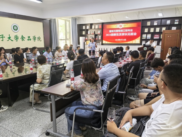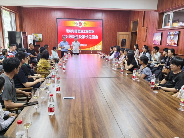 8月23日、24日,在2024级新生报到期间,葡萄与葡萄酒工程系在食品学院主楼108品酒室、220会议室,分两批组织召开了2024级新生及家长见面会,120余位新生家长和新生参加了交流见面,新生班主任、辅导员、葡工系部分老师及2021级、2022级和2023级部分同学参加交流会。刘桂青老师作为学院团委书记及2024级辅导员,首先欢迎新生家长来学院参观交流,并介绍了食品学院的学生管理、社团发展等情况,请与会新生家长放心,学院会全方位指导、管理和培养好学生。