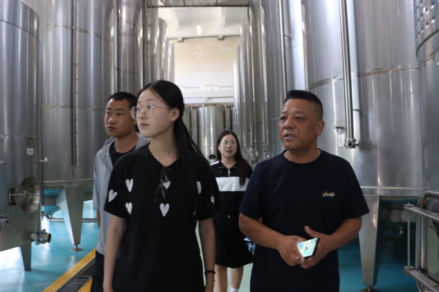 2024714日,bat365在线中文官方网站赴兵团二师二十四团和硕县思政主题调研社会实践团队深入天山南麓探访了当地著名的天塞酒庄与中菲酒庄。他们不仅亲眼见证了葡萄酒的生产过程,还深刻感受到了政府在葡萄酒产业中的思政引领与大力扶持。