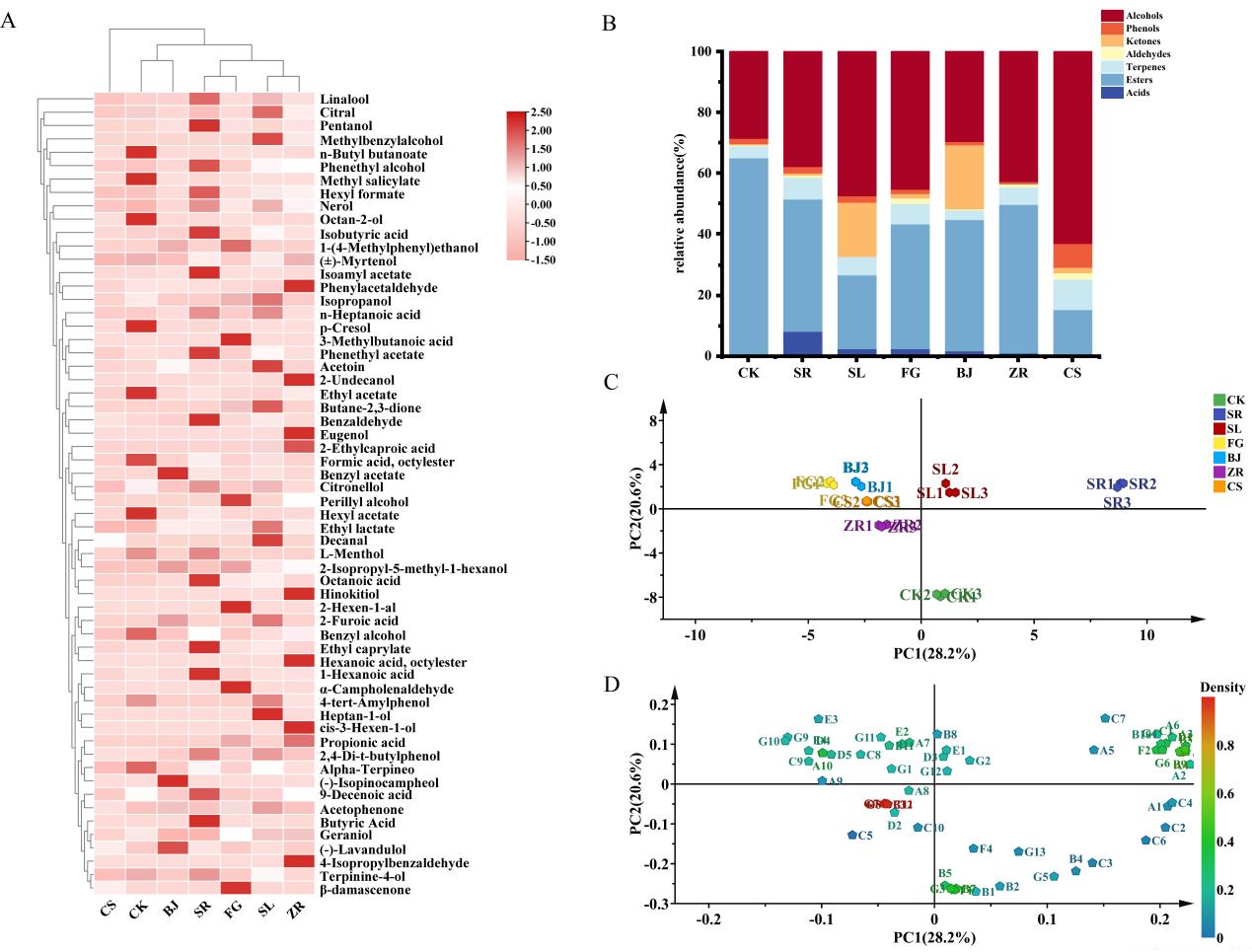 “夏黑”是一种在新疆种植的无核鲜食葡萄,富含有机酸、多酚类化合物、碳水化合物和氨基酸多种等营养功能成分,广受消费者喜欢。因其成熟时间短、贮藏成本高,目前以鲜食为主,导致其产品单一。本研究以其为原料,利用多种不同乳酸菌株接种发酵夏黑葡萄汁,基于理化特性、功能性成分、抗氧化能力、氨基酸含量和挥发性化合物揭示了不同乳酸菌株对夏黑葡萄汁的影响,同时,利用多种统计学处理方法筛选出了不同组间的差异性标志物。该研究为夏黑葡萄精深加工提供了技术支撑,对葡萄产业的延伸和新疆区域经济的发展具有重要意义。
