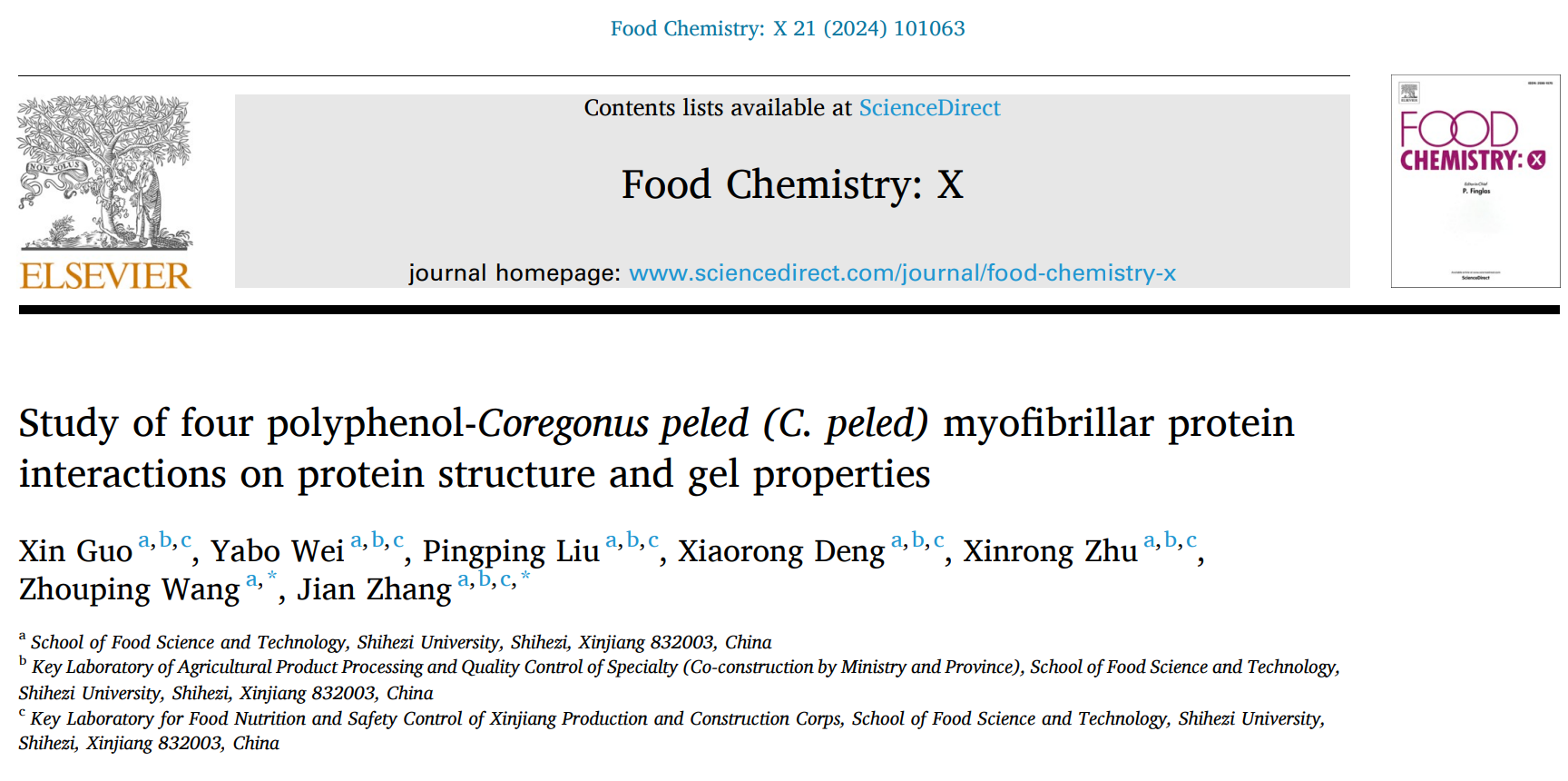 高白鲑(C. peled)作为新疆特色冷水鱼,在构建优质蛋白产品方面具有巨大的市场潜力。然而,蛋白氧化和非蛋白添加剂会影响蛋白产品的性能与质量。酚类物质广泛存在于水果、蔬菜和谷物中,大部分具有抗氧化和抗菌特性。多酚通过非共价和共价相互作用与肌肉蛋白结合,改善蛋白质的功能特性已成为研究热点。然而,自然界中存在各种具有复杂系统的多酚物质,不同多酚与蛋白相互作用的亲和力存在强弱差异,多酚剂量大小导致与蛋白相互作用的构象及功能特性发生变化。此外,多酚-蛋白相互作用结合机制、结合位点以及蛋白-多酚相互作用对功能特性的影响有待研究。