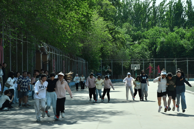 运动会在三人绑腿竞速跑中拉开序幕。各参赛队“2生1师”组合绑腿并肩,哨声响起时,有的队伍因步伐不一险些摔倒,师生互相搀扶仍坚持冲向终点;未来食品组的参赛选手们则配合默契,由教师带领喊着口号冲刺,50米跑道上洋溢着欢笑声。踢毽子接力赛中,3名队员围圈传递,毽子如彩蝶飞舞,果蔬保鲜组的师生在默契配合下,1分钟完成次数创新高;乒乓球运输赛里,4名队员持拍接力奔跑,乒乓球掉落时迅速捡起继续前行,场外加油声不断;跳大绳接力赛中,10名队员依次跃入摇绳区,畜产组的摇绳学生与跳绳师生配合紧密,2分钟累计次数破纪录,现场气氛持续升温。
