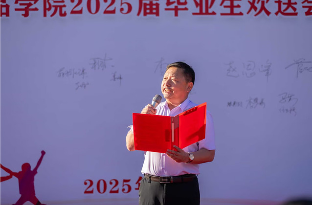 食品学院党委书记程卫东为毕业晚会致辞。他深情寄语毕业生们,希望他们带着母校的珍贵回忆、怀揣梦想与憧憬,以坚韧的品格迎接未来的挑战,用创新的思维开辟新的局面,书写属于自己的人生华章。程书记的话语中充满了对毕业生们的殷切期望与美好祝愿,激励着每一位即将远行的学子。