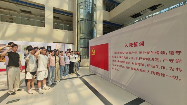 “我志愿加入中国共产党……” 展厅内,全体党员面向党旗整齐列队,在支部书记褚宇欣的带领下重温入党誓词。铿锵有力的宣誓声中,党员们神情庄重,眼神中闪烁着坚定的光芒。支部成员特意用镜头记录下这一庄严时刻,老党员何若男表示:“举起右手的瞬间,仿佛再次感受到入党时的热血,誓言中的‘永不叛党’让我对廉洁自律有了更具象的认知。”