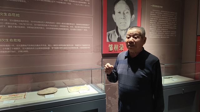 甘大国带领团队成员来到二二二团北亭文史馆,在“受伤的军帽”展品前缓缓讲述了自己的生平经历,以及曾遭遇的四次生死危机。当提及军帽被炸飞的惊险瞬间时,老人声音哽咽,眼眶泛红,但眼中闪烁的是对过往岁月的无悔与自豪。这些故事深深触动了在场的每一位青年学子,他们被老一辈兵团人无私奉献、艰苦奋斗的精神所感染,纷纷表示要传承红色基因,弘扬兵团精神,为实现中华民族伟大复兴的中国梦贡献青春力量。
