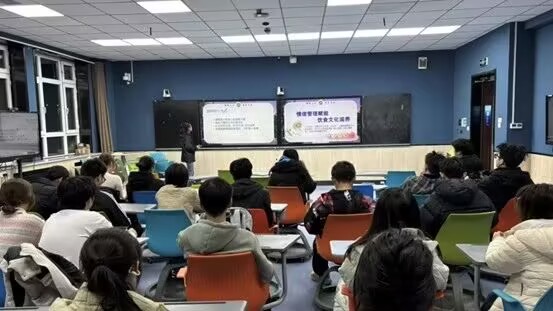 演讲过程中,PPT图文结合的形式将专业知识具象化,心理委员的主持则兼顾节奏与互动,让原本抽象的营养心理学知识变得易懂、实用,现场同学不时提笔记录,将食愈技巧纳入自己的生活清单。