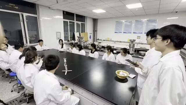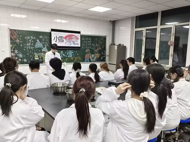 活动开始,主持人蒿博韬细致讲解小雪节气的物候特征与“补冬”传统,让学子们在动手前便感受节气文化的深厚底蕴。随后,食品学院烘焙俱乐部成员现场演示红糖糍粑制作工艺,从和面的软硬把控、揉糍的力道技巧,到煎炸的火候掌控、裹糖的均匀程度,每一个关键步骤都讲解得清晰透彻。学子们分组实操,指尖触碰着温热柔软的糯米团,耳畔回响着糍粑下锅的“滋啦”脆响,在亲手制作中品味节气美食的独特魅力。